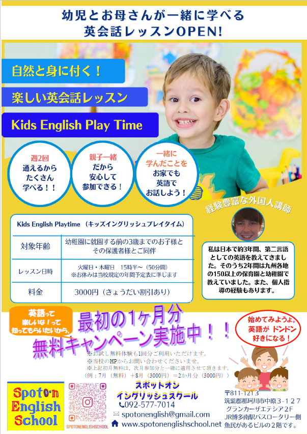当校では、生徒様がそれぞれの年齢で一番伸ばせる能力にスポットを当て基礎からしっかりと確実に話せる英語を育てます。また、子供たちの一生懸命をサポートするいろいろな工夫がスポットオンにはあります。無料体験レッスンもございますので、詳細についてはお気軽にお問い合わせくださいませ。